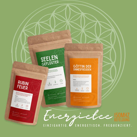 Unser mit 150MHz befeldeter Tee ist nicht einfach nur ein Getränk, sondern eine Einladung zu einem sinnlichen Erlebnis. Mit jedem Schluck tauchst Du in eine Welt des Wohlbefindens, der Harmonie und der reinsten Form von Genuss. Ob als belebender Start in den Tag, als besänftigender Begleiter am Nachmittag oder als meditativer Abschluss des Abends – dieser Tee verspricht Momente purer Lebensfreude.