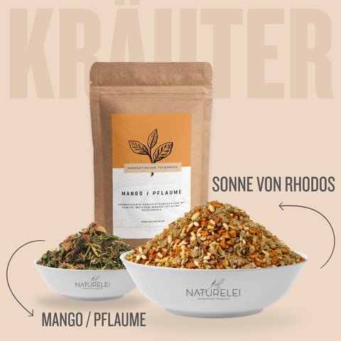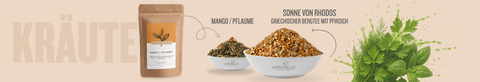 Kräftige Minze oder sanfte Kamille verfeinert mit fruchtigen Beeren, Obststücken oder exotischen Zitrusfrüchten. Zartsüß, würzig-frisch, indisch-scharf oder fruchtig-erfrischend, eine Vielfalt, die keinen Geschmack auslässt. Je nach Befinden und Gemütszustand kann hier unter reinen Kräutervariationen wie Anis-Thymian und Fenchel-Anis-Kümmel oder auch unter Kräutern mit natürlichem Aroma, wie Eukalyptus-Honig und Anis-Lakritz gewählt werden. Und manchmal sollte man den Mut haben, auch ausgefallene Dinge zu probieren. Hier kommen dann die Kräutertees mit den interessanten Mischungen aus Spekulatius, Gurke-Minze, Minze-Lemon, Schokolade oder der Einschlaftee mit Kürbis ins Spiel.