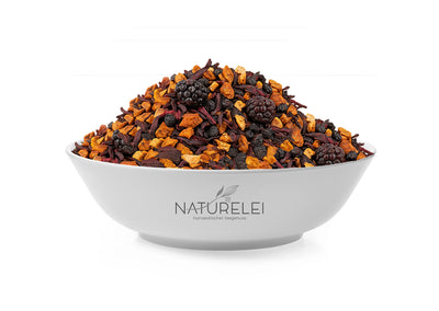 Reife Brombeeren sind das Herzstück dieser Mischung – süß, saftig und mit einer leicht herben Note, die den Geschmack so unverwechselbar macht. Schon beim Aufgießen entfaltet sich der intensive Duft nach frisch gepflückten Brombeeren, während die dunkel-violette Tassenfarbe an einen Sommerkorb voller Waldfrüchte erinnert. Jeder Schluck bringt das volle Aroma der Brombeere in die Tasse: fruchtig, erfrischend und ein kleines bisschen wild.