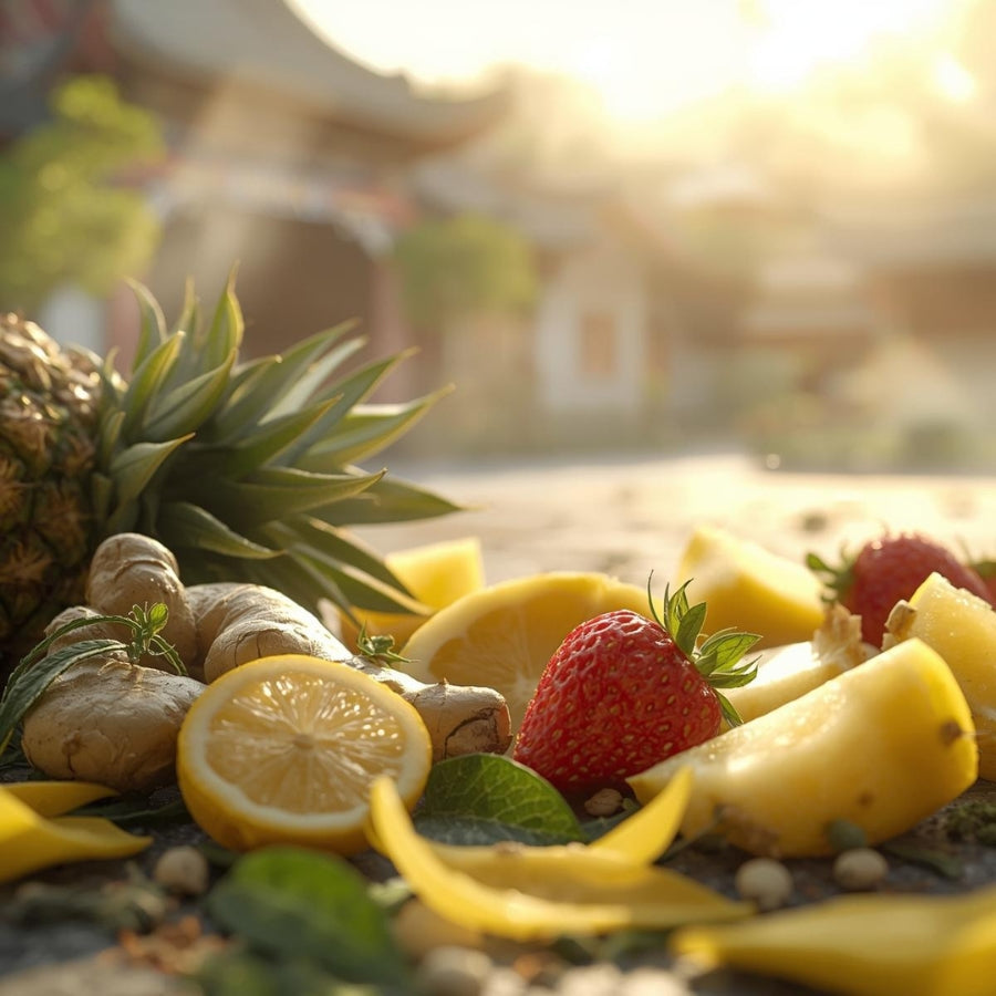 Dieser Tee fühlt sich an wie ein ruhiger Morgen in einem fernöstlichen Tempel. Mehrere edle Grüntees und feiner weißer Tee bilden eine klare, elegante Basis, auf der sich die Fruchtigkeit von Erdbeere und Ananas entfalten kann. Die Erdbeere bringt eine sanfte Süße, die Ananas eine helle, tropische Frische. Sonnenblumenblüten fügen eine weiche, sonnige Note hinzu, die den Aufguss rund und freundlich wirken lässt. Das Ergebnis ist ein Tee, der leicht, fruchtig und zugleich ausgewogen schmeckt – ein kleiner Lichtmoment in der Tasse.