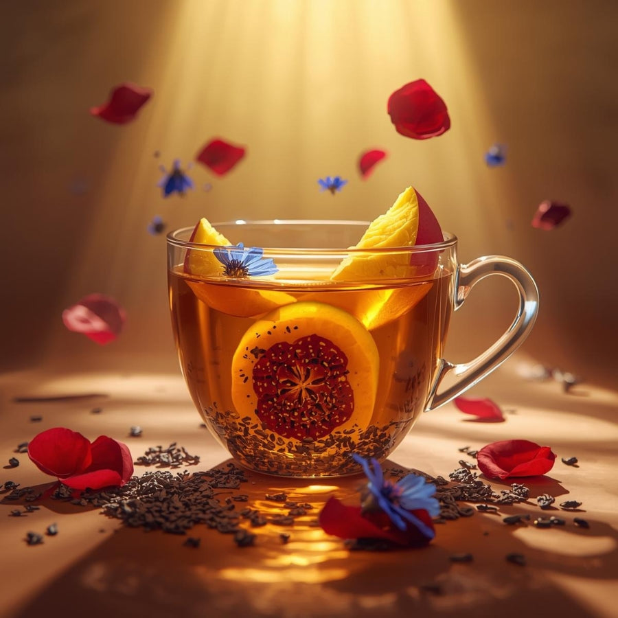 My Lady verführt mit einer außergewöhnlichen Fruchtkomposition aus saftiger Mango und der fein-säuerlichen Exotik der Naranquilla. Die kräftige Schwarzteebasis verleiht Tiefe und Struktur, während Weinbeeren und kandierte Ananasstücke eine sanfte, natürliche Süße beisteuern. Zarte Rosen- und Kornblumenblüten runden das Aroma mit floraler Eleganz ab und machen jede Tasse auch optisch zu einem kleinen Kunstwerk. Ein Tee mit Stil – fruchtig, aromatisch und wunderbar vielschichtig.